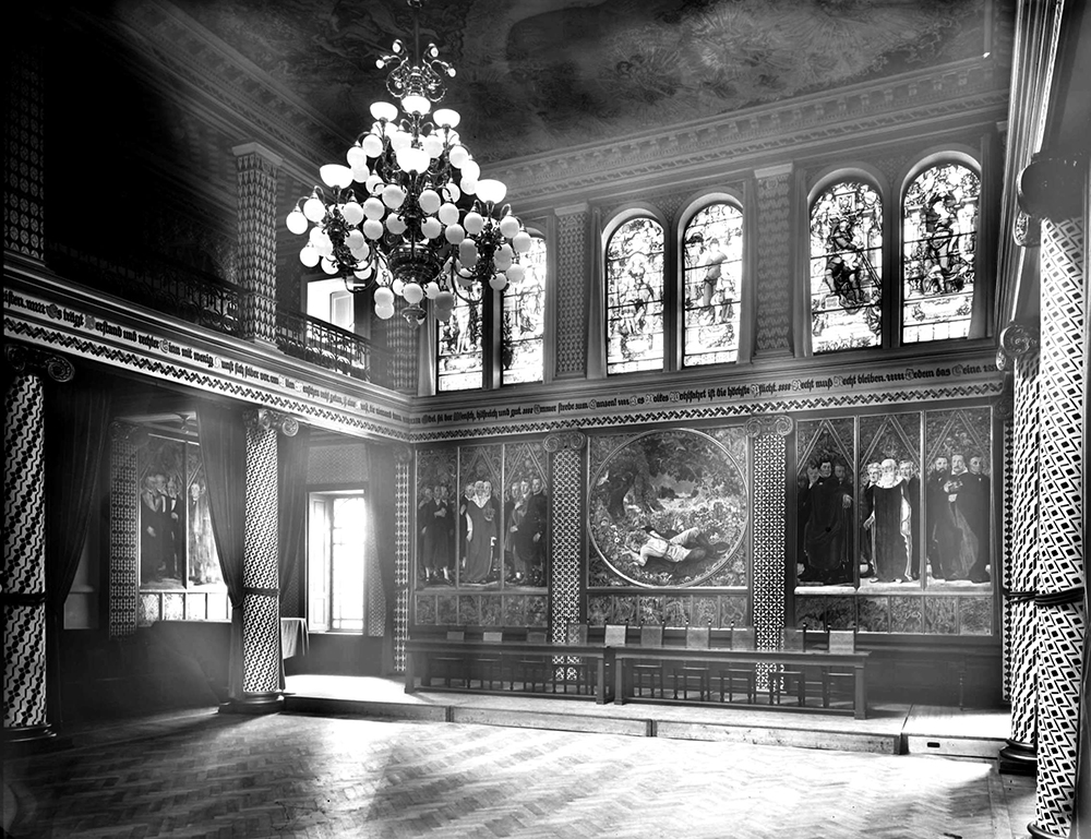 Wandbemalung des Bürgersaales im Karlsruher Rathaus (1924 bis 1926, von Hans Adolf Bühler gemalt)